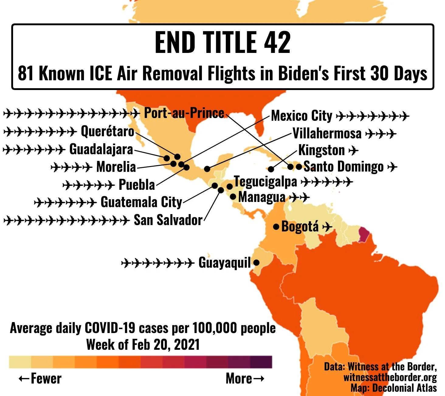 ICE Air Weekly Activity – Week of 1 Feb 2021. 25 Removal flights to 8 different countries, the most since the week of 26 October, and 7 higher than the prior 6-week average (includes 2 holidays).
