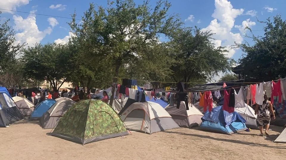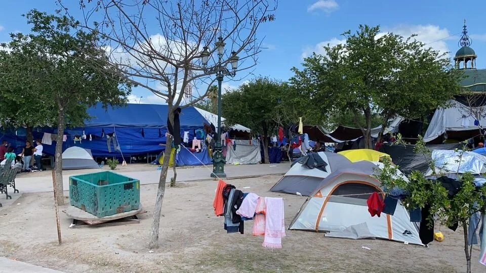 Photo - Reynosa Mexico Plaza - migrant camp spawned by the Administrations continuation of Trump's illegal Title 42.