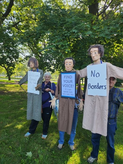 Senator Ted Cruz (R-TX) and a couple of his fellow senators came to Brownsville, Texas to say that the people seeking asylum are actually an invasion of Chinese members of Mexican drug cartels, rapists, child sexual abusers, and slavers, supported by President Biden, VP Kamala Harris, Elizabeth Warren, and AOC in her white pantsuit. Joshua Rubin, founder of Witness at the Border, stood among the reporters, holding a sign.