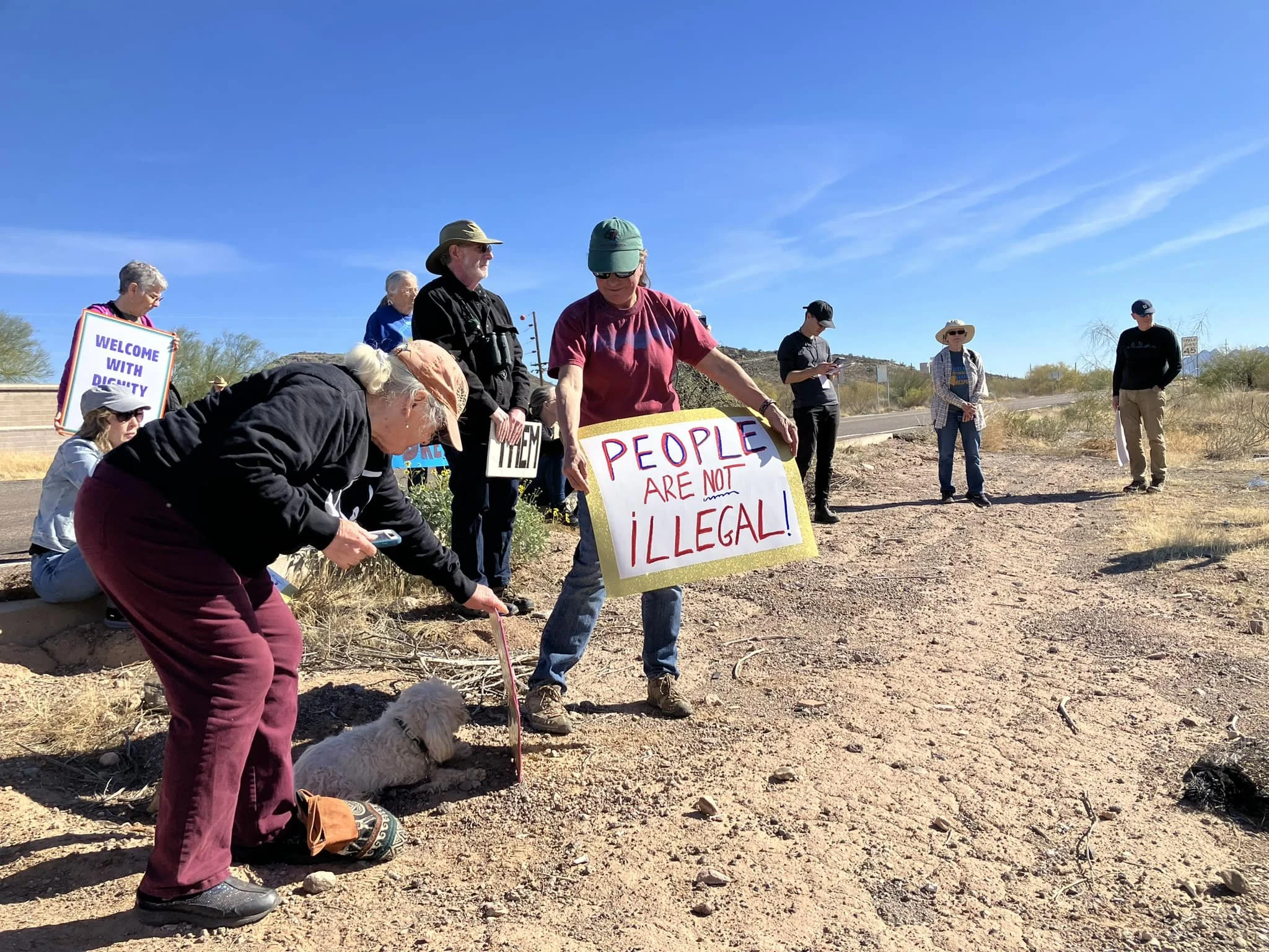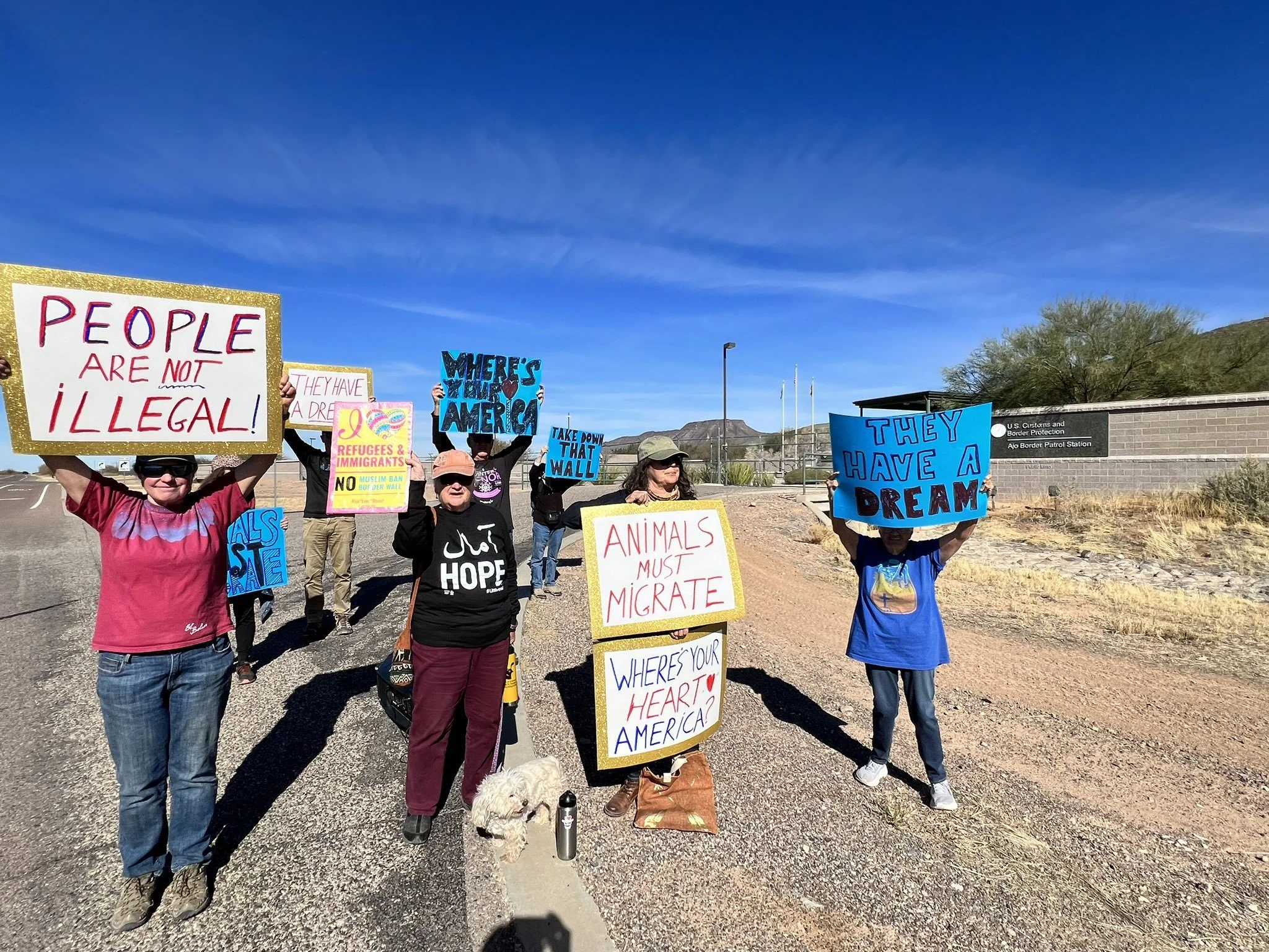 We caravaned from Ajo to Why and held a protest vigil in front of the station and watched as buses left the station.